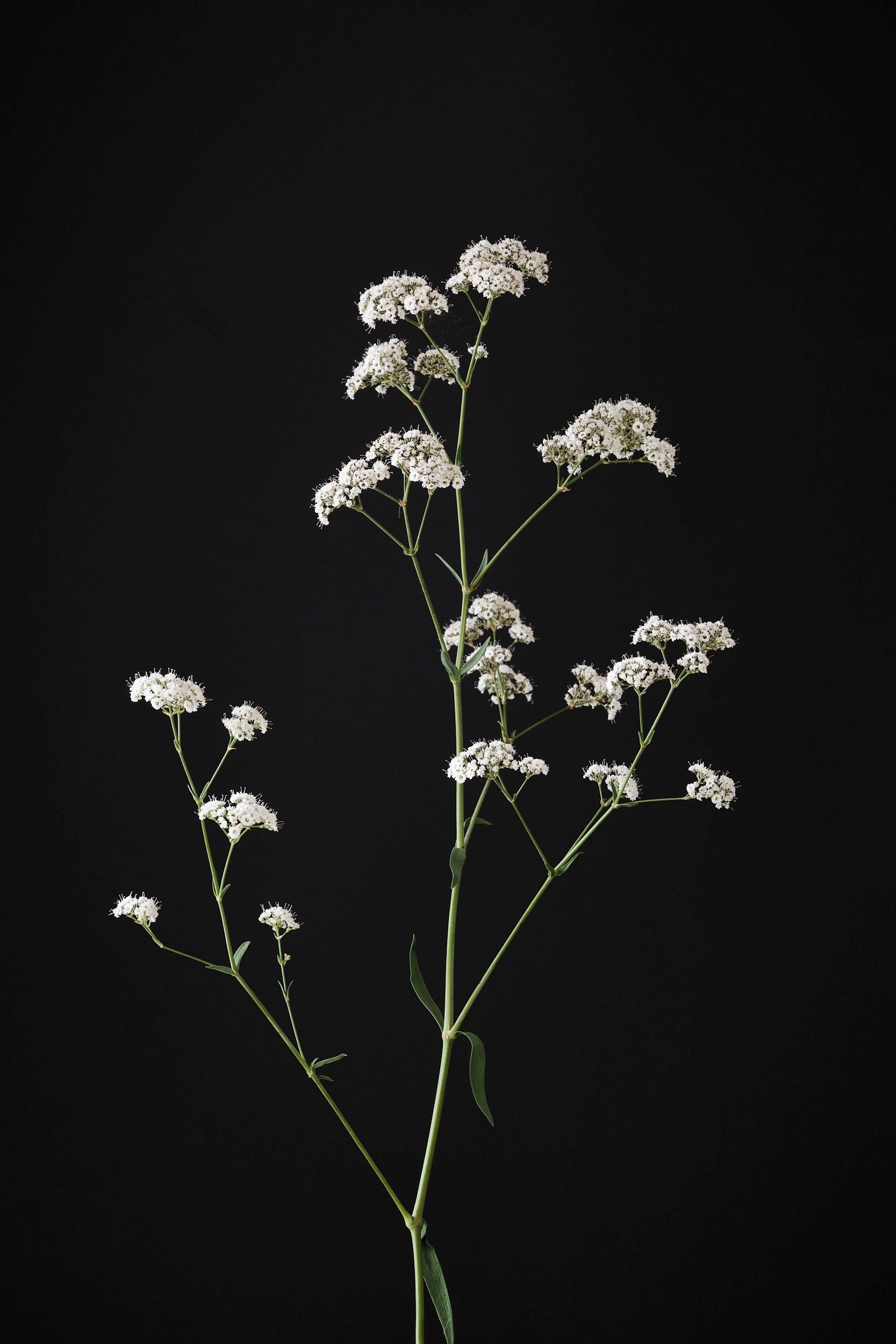 An abundance of tiny white flowers with a rich flowering, especially concentrated on the top.